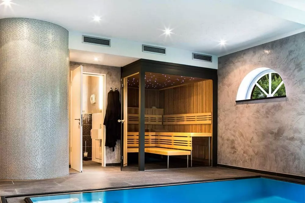 So ist die feine Holzverkleidung einer Sauna oder das Glitzern der Sonne im Wasser des Swimming Pools eine Möglichkeit, das besondere Stimmungsbild auch mit den Objektfotos zu verknüpfen.
